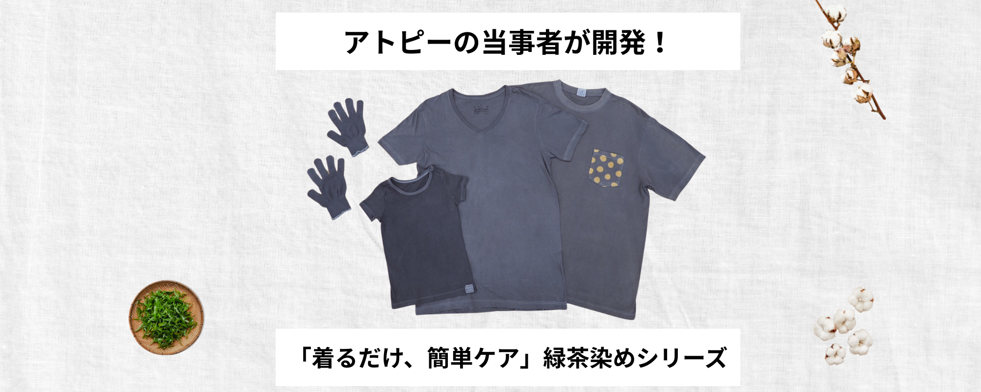 アトピーの当事者が、アトピー患者さんとともに創り上げた、こだわりの緑茶染めインナーシャツです。